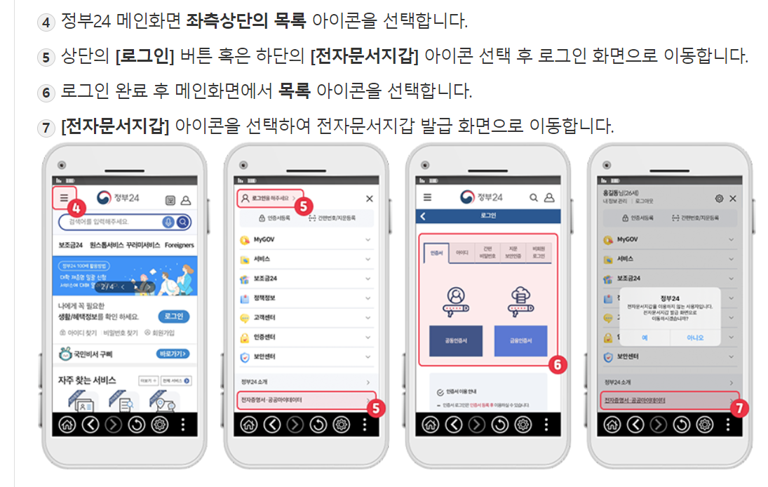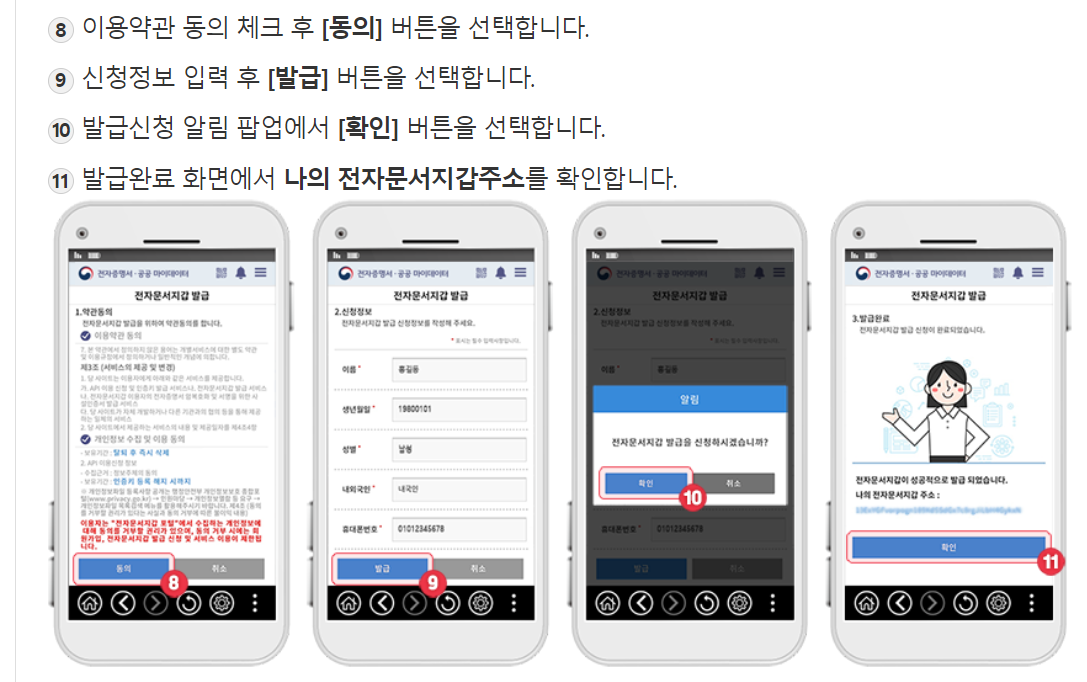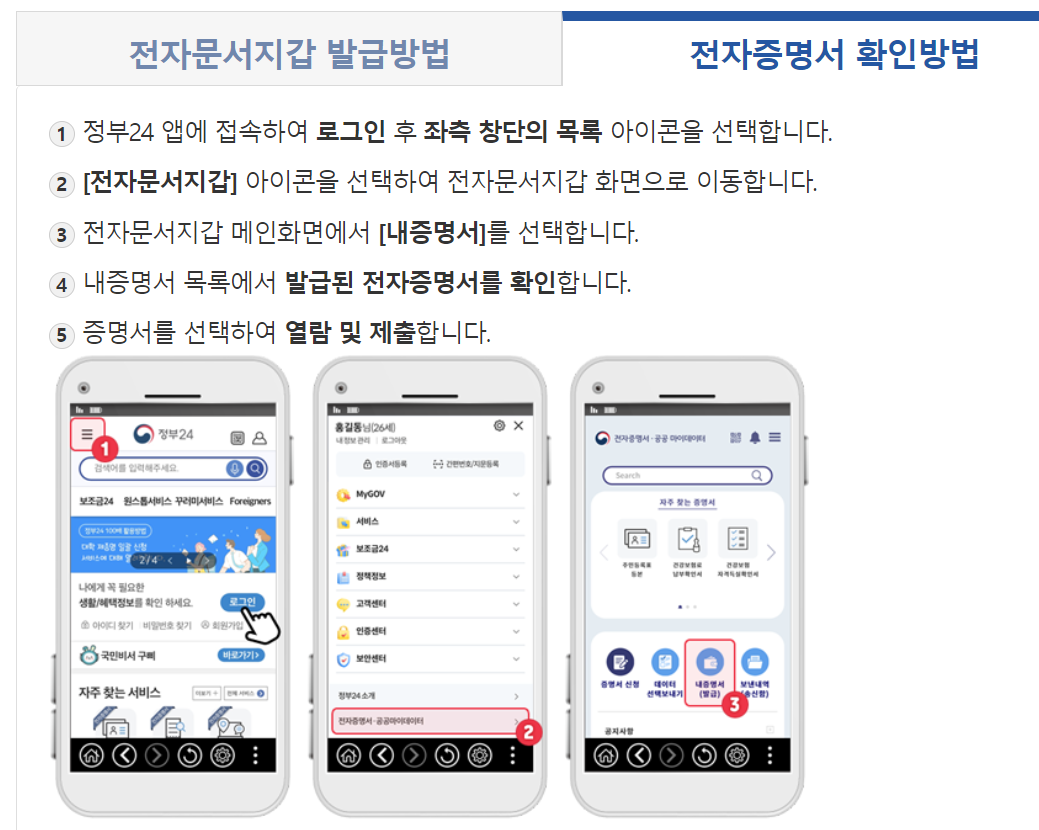 5. 마지막으로 신청하기 버튼을 누르면 완료되며 프린트 출력등이 가능합니다. 참고로 전자문서지갑으로 송부받을 수 있습니다.