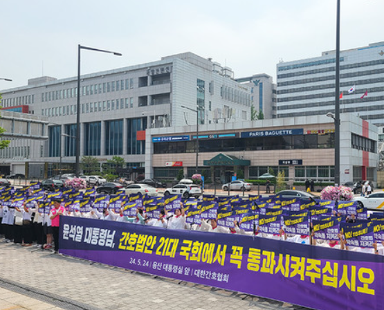 간호법은 돌봄 인력의 처우 개선을 목표로 하는 법안으로, 지난해 4월에는 국회를 통과했지만 윤석열 대통령이 거부권을 행사하면서 폐기되었습니다.