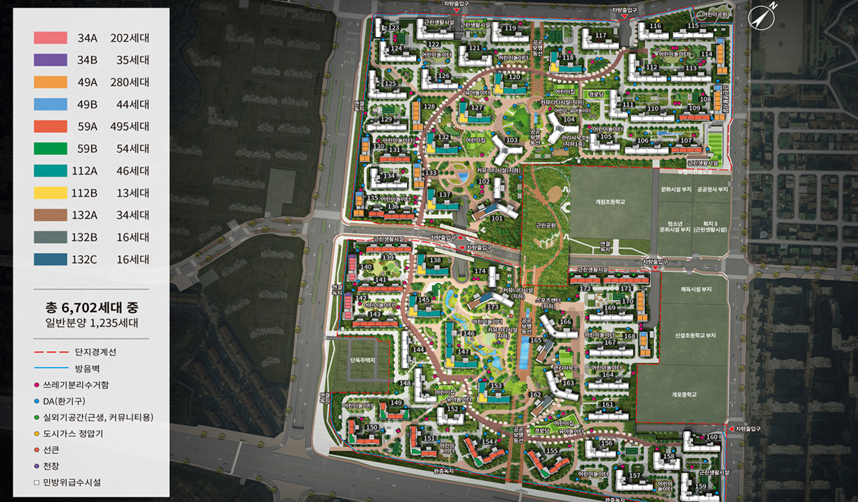 동수는 총 74개동이며 지하 4층과 지상 7~35층으로 이루어져 있습니다. 잠실 파크리오를 쫓아가는 수준인 6,702세대수입니다.
