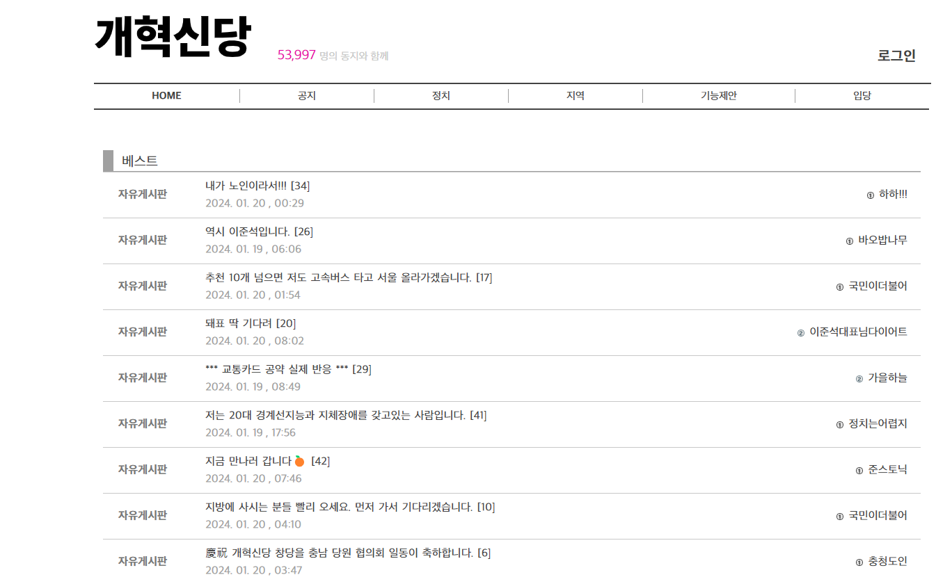 개혁신당은 온라인으로 당원을 모집하였는데 굉장히 빠른 속도로 모집이 되어 왔습니다. 포스팅을 작성하는 현 시점기준으로는 53,781명이 개혁신당에 가입한 것으로 나타나고 있습니다.