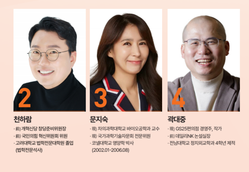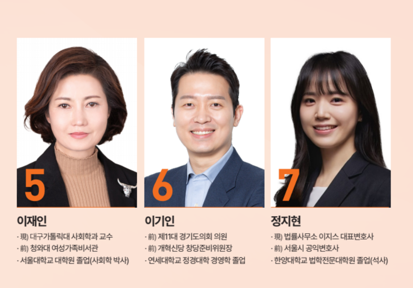 개혁신당 비례대표 순번 명단 당선권 국회의원 후보