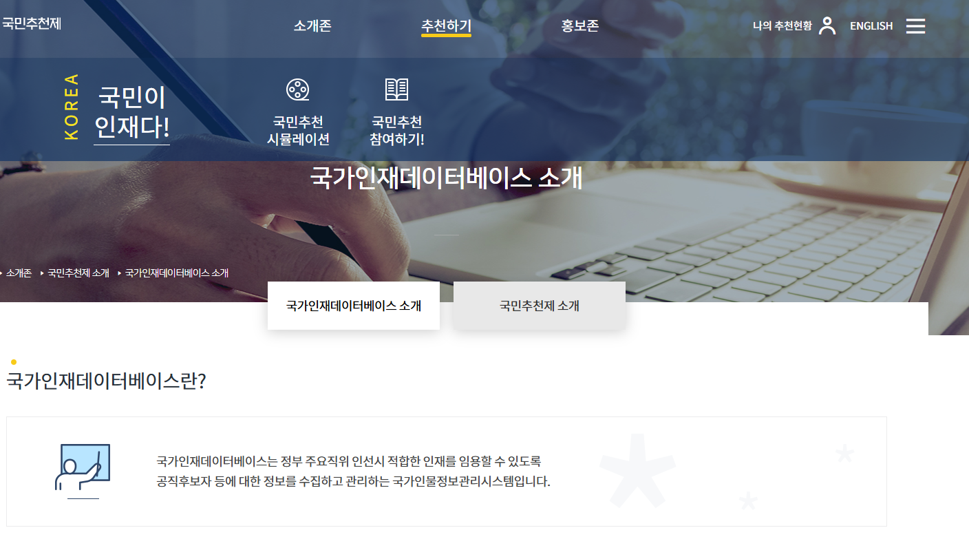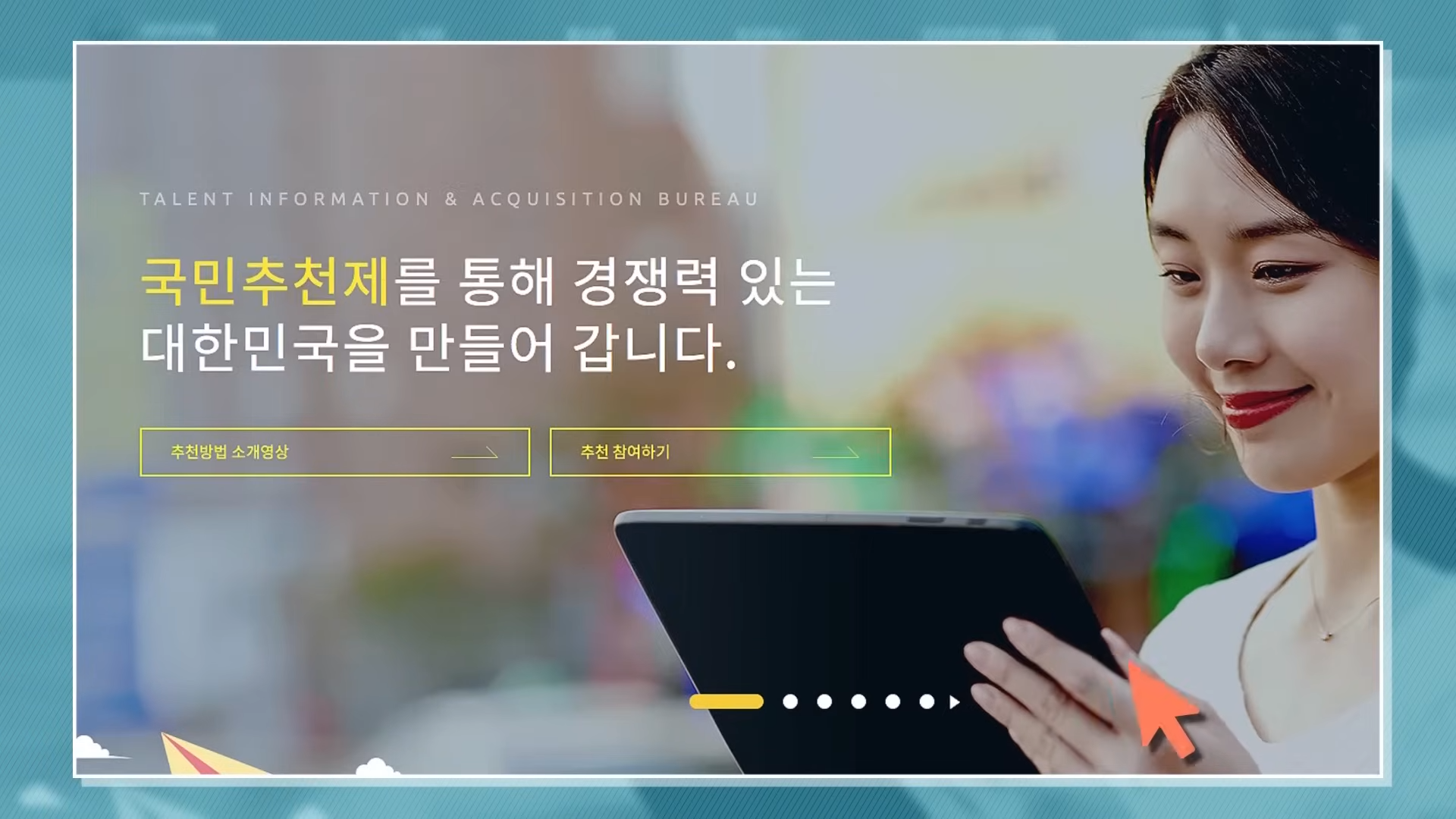 이 제도의 공식 창구인 인사혁신처 국민추천제 홈페이지를 통해 추천을 진행하는 방법을 단계별로 구체적으로 안내합니다.