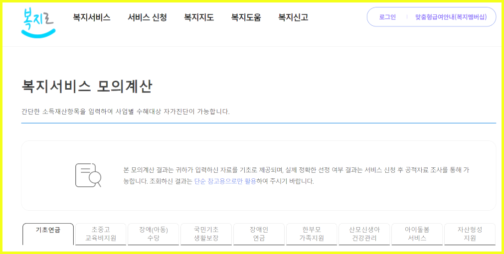 본인이 자격 해당되는지등이 궁금하시다면 아래 모의 계산을 통해서 먼저 참고해 보실 수 있습니다.