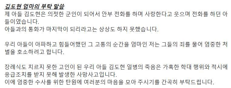 이번 글에서는 김도현 일병 사망 사건을 정리해보고 어떠한 의문점과 문제점이 있는지 등 관련 정보를 상세히 소개해 드립니다.