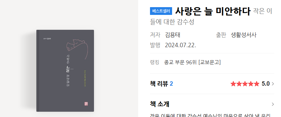김용태 신부의 대표 저서는 사랑은 늘 미안하다입니다. 이 책은 예수님의 마음으로 이웃을 사랑하며 살아가는 삶에 대한 책입니다. 우리 주변의 도움이 필요한 사람들에게 관심을 가지고 손길을 내밀어야 한다는 메시지를 전달합니다.
