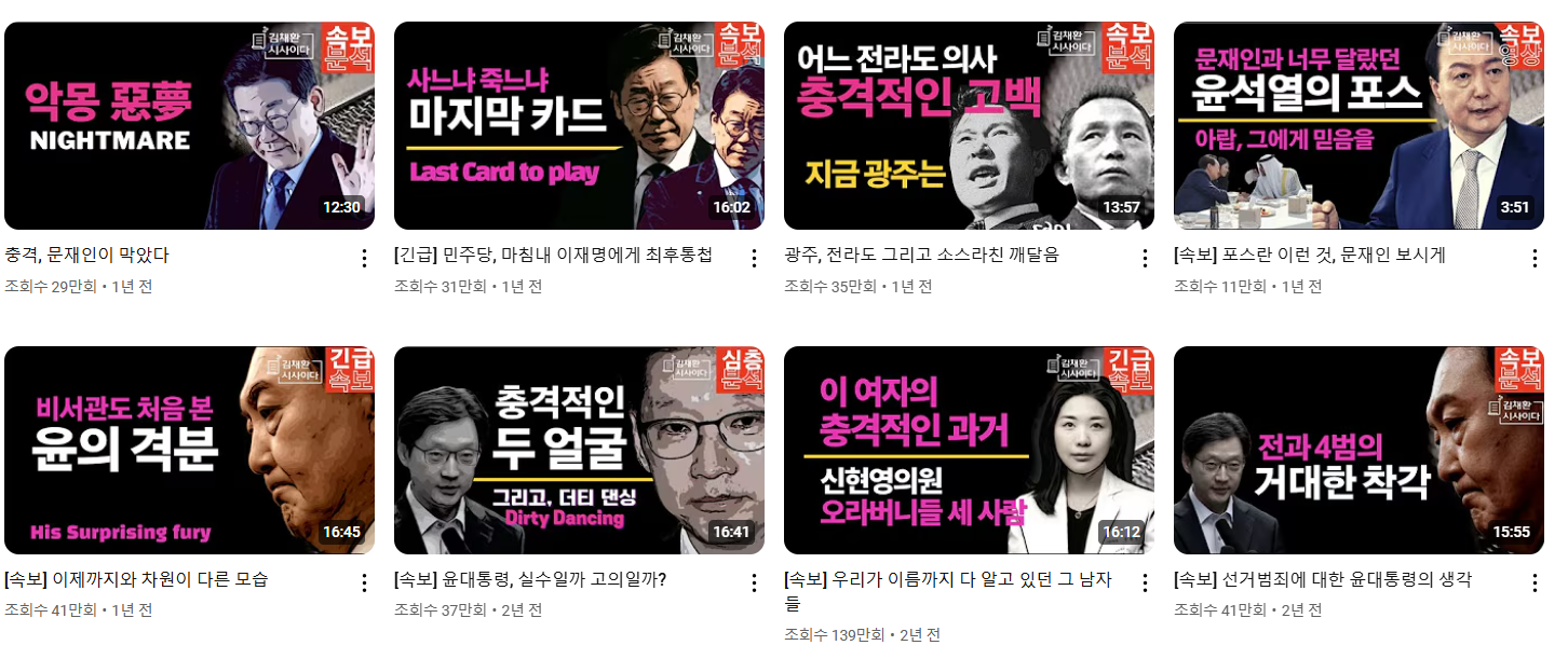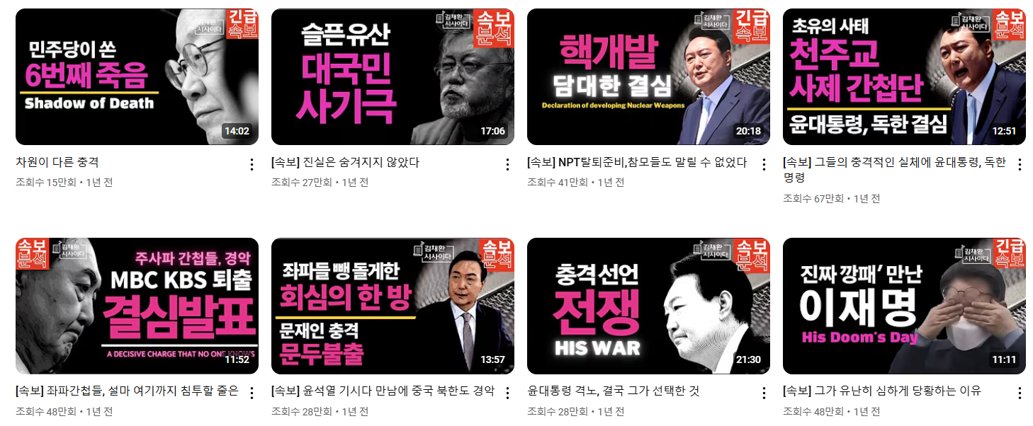 이와 같은 영상들은 김채환이 그동안 개인 유튜브 채널에서 다뤘던 정치적 주제와 자극적인 썸네일 디자인을 그대로 이어받은 것으로 보였습니다.