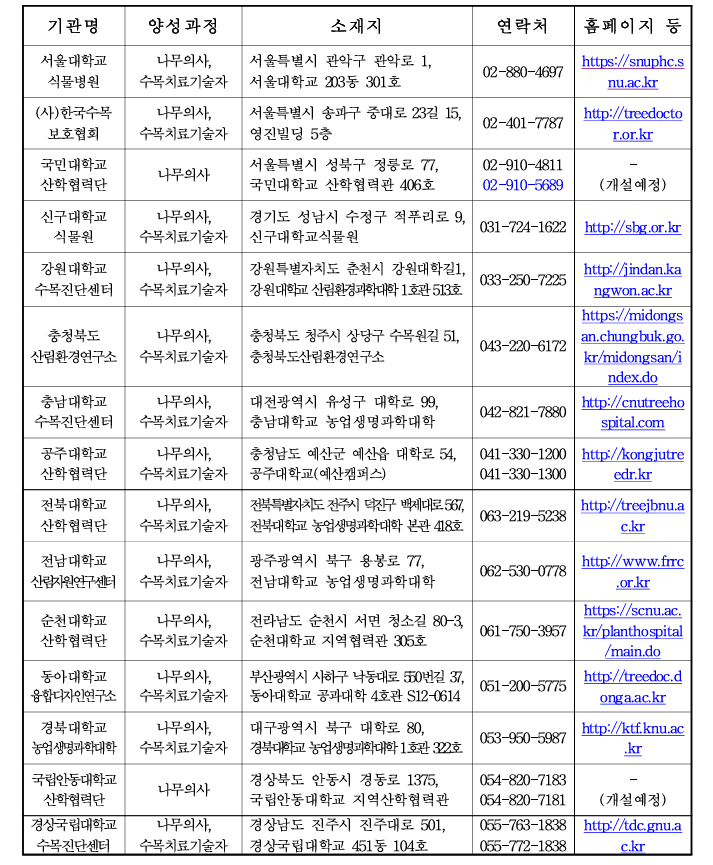 나무의사는 나무의 병해충을 진단하고 치료하는 전문직으로, 나무의사 자격을 취득하기 위해서는 두 차례의 시험을 통과해야 합니다. 그리고 나무의사가 되기 위한 첫걸음, 바로 양성기관에서 교육을 받는 것입니다. 전국에 여러 양성기관이 있으니, 자신에게 맞는 곳을 선택하는 것이 중요합니다. 다음과 같은 곳들이 있습니다.