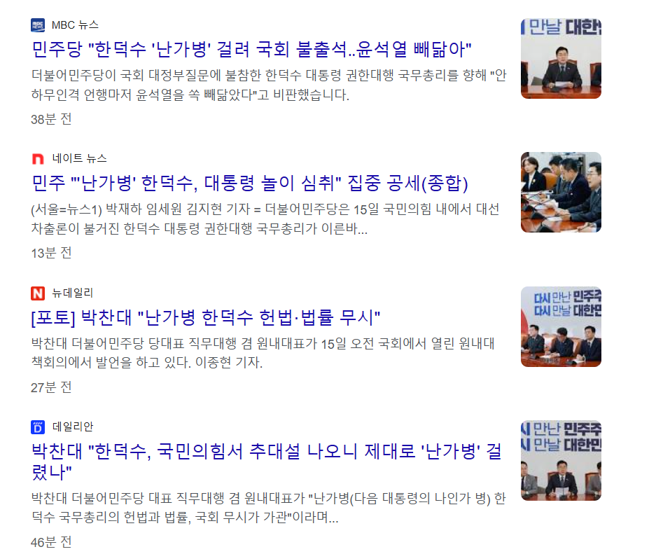 더불어민주당은 한 권한대행의 국회 대정부질문 불참과 대선 출마설을 강하게 비판하며, 그의 행태를 "안하무인", "대통령 놀이" 등으로 규정했습니다.