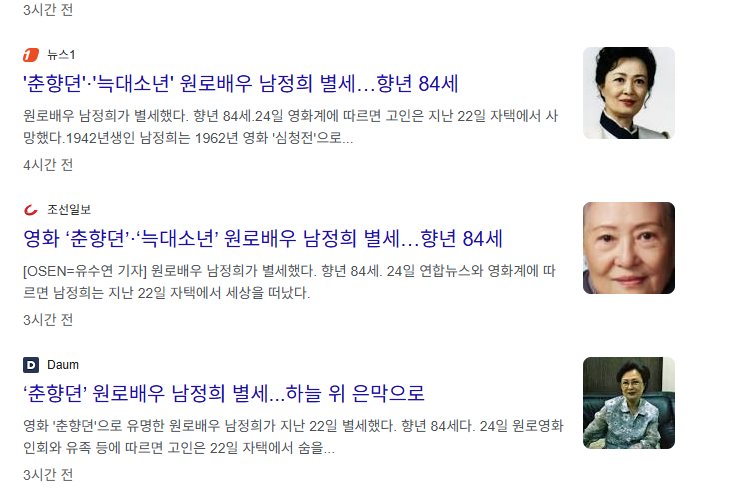 이제는 무대와 카메라를 떠났지만 남정희가 남긴 연기의 흔적과 예술적 자산은 대한민국 대중문화 속에서 오래도록 살아 숨 쉴 것입니다.
