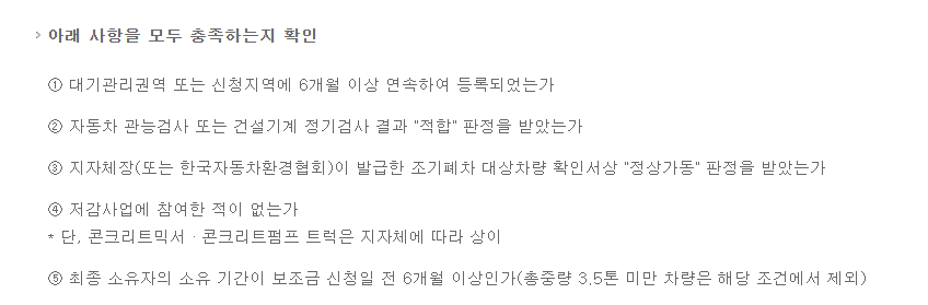 기본적으로 배출가스 4, 5 등급 경유자동차가 그 대상입니다. 그리고 배출가스 등급에 해당되어야 합니다.