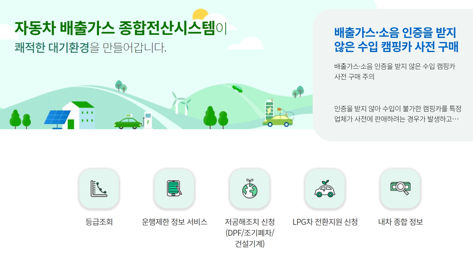 배출가스 등급에 해당하는지의 여부는 아래의 홈페이지에서 확인이 가능합니다.