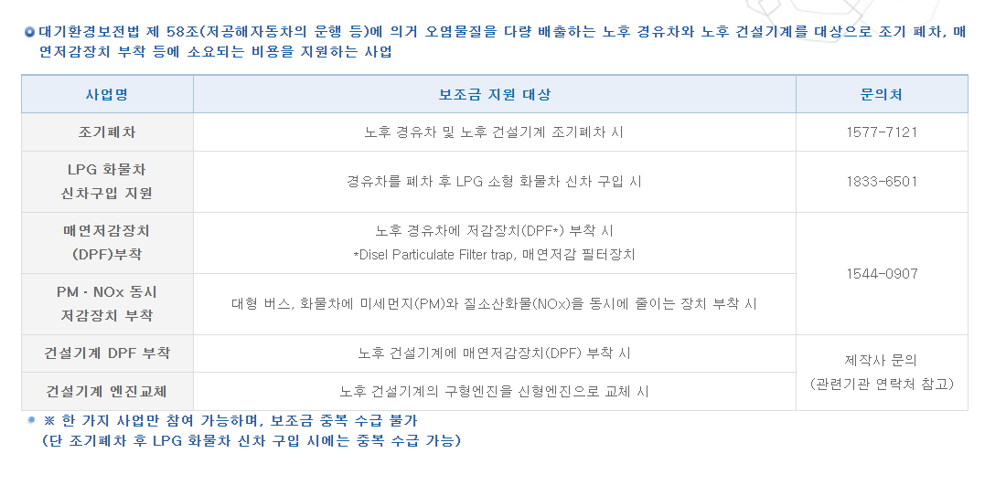 요즘에는 지구 온난화등 세계적으로 비상사태이기 때문에 어떻게든 노후 경유차등 배출가스를 줄이고 환경을 보존하기 위해서 이러한 지원금을 제공하면서 처분할수 있도록 돕는 것입니다.