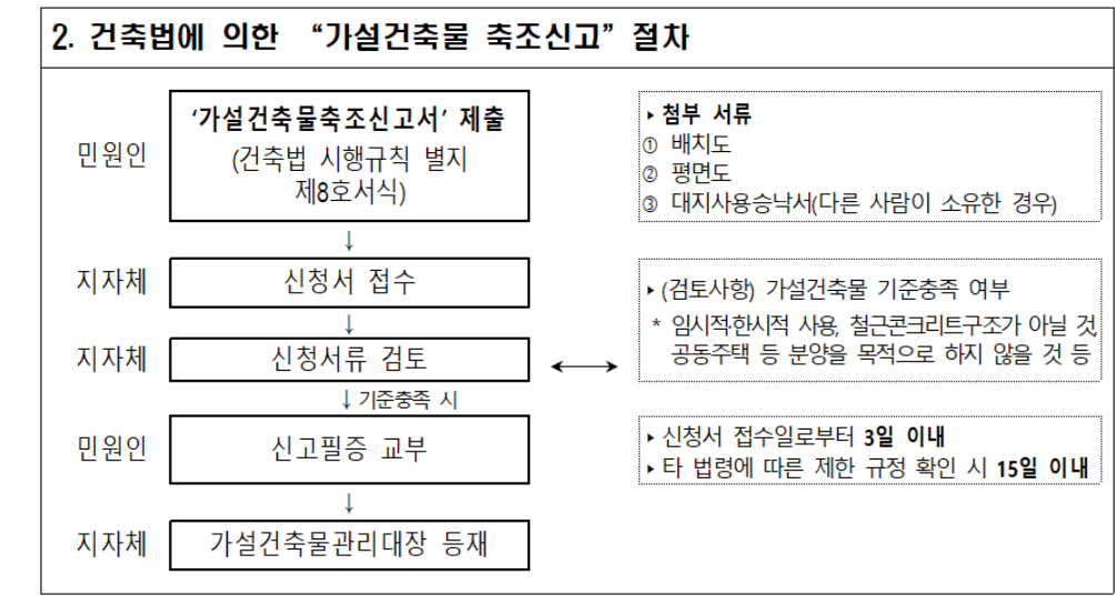 사용 기간은 가설건축물의 안전성 및 내구연한을 고려하여 최대 12년으로 설정되며, 이는 최초 3년, 연장 3회의 형태로 관리됩니다. 설치 절차는 인근 영농에 미치는 영향을 고려한 피해 방지 계획서를 제출하고, 지자체의 사전 확인을 받은 후, 가설건축물 축조 신고 및 농지대장 등재 과정을 거쳐야 합니다.