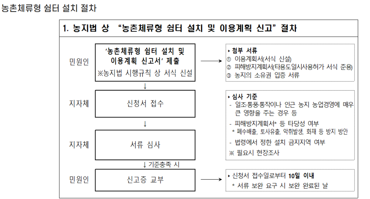 2. 농촌체류형 쉼터 설치 기준 도입 시행