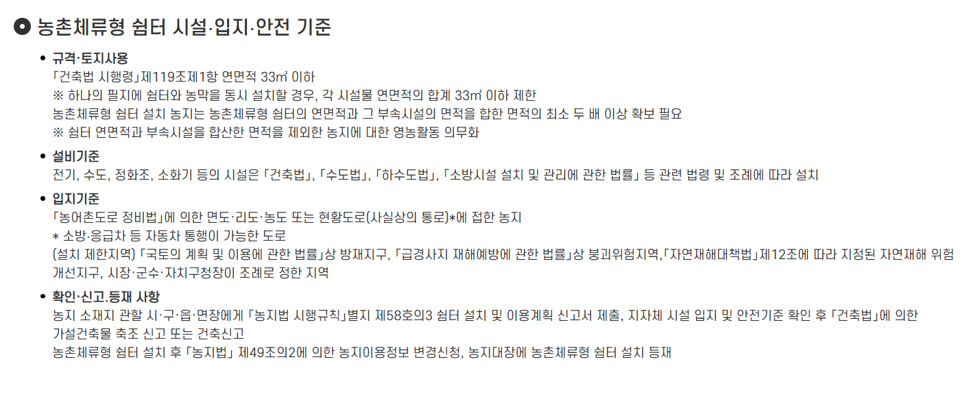 2. 농촌체류형 쉼터 설치 기준 도입 시행