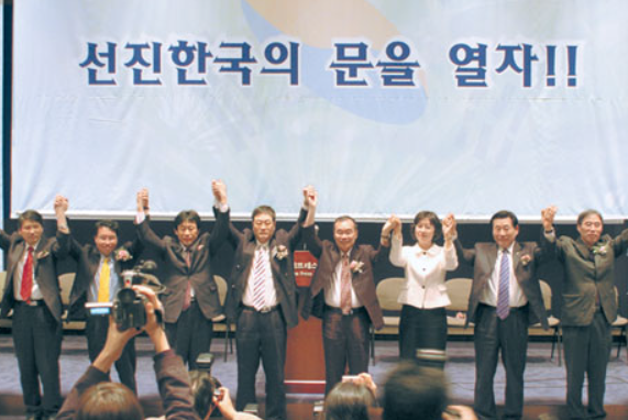 2005년부터 '뉴라이트'라는 이름을 내건 사회단체들이 우후죽순 생겨나 정치에 투신했고, 2007년 대선에서는 이명박 후보 지지로 세력을 확장했습니다. 하지만 내부 계파 갈등과 이념적 한계로 인해 영향력은 점차 약화되었습니다.