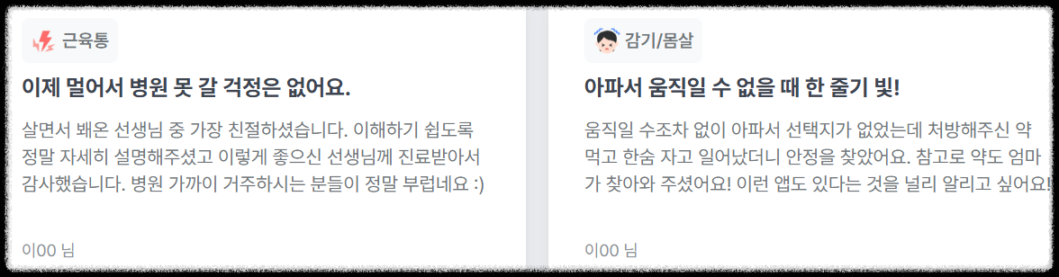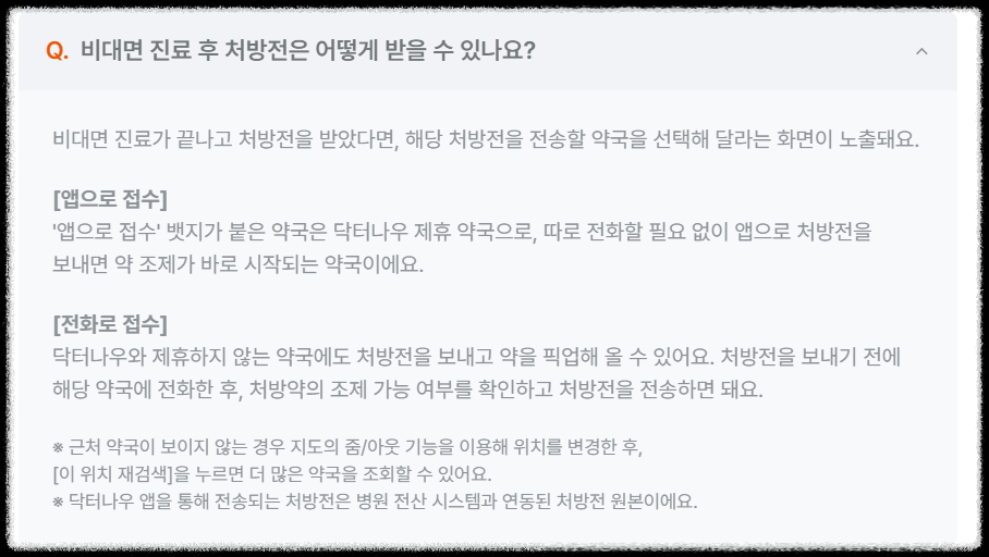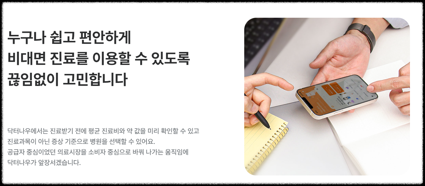 이처럼 닥터나우는 비대면 진료, 약 처방, 의료 상담, 약국 정보, 지역별 병원 정보 등 종합적인 의료 서비스를 제공하며 사용자 편의성을 높이고 있습니다.