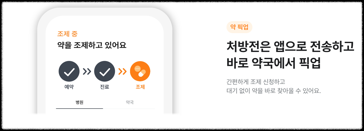 닥터나우는 진료 후 GPS 기반으로 가까운 약국을 연결해 약을 조제하고 수령할 수 있도록 지원합니다. 현재는 비대면 진료 시범 사업으로 인해 약 배송이 제한적으로 운영되고 있습니다.