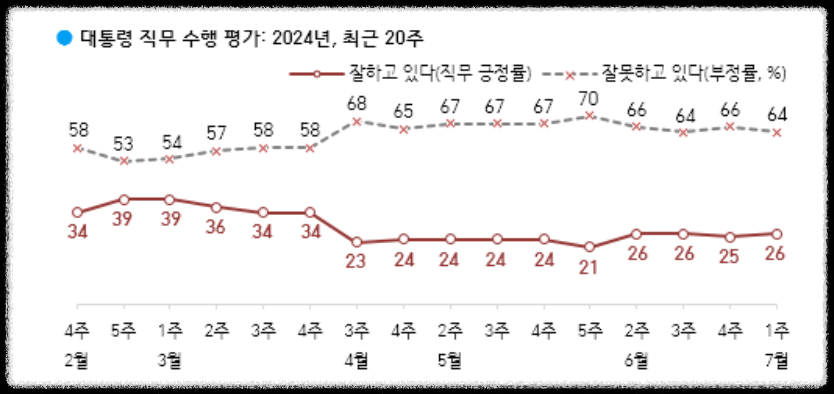 민생 경제에 대한 행보는 크게 달라지지 않아 지지율 상승 동력을 확보하기 어려울 전망입니다. 더불어민주당 등 야당은 채해병 특검 도입을 강력히 주장하고 있으며 이에 따른 정치적 공세가 지속되고 있습니다.