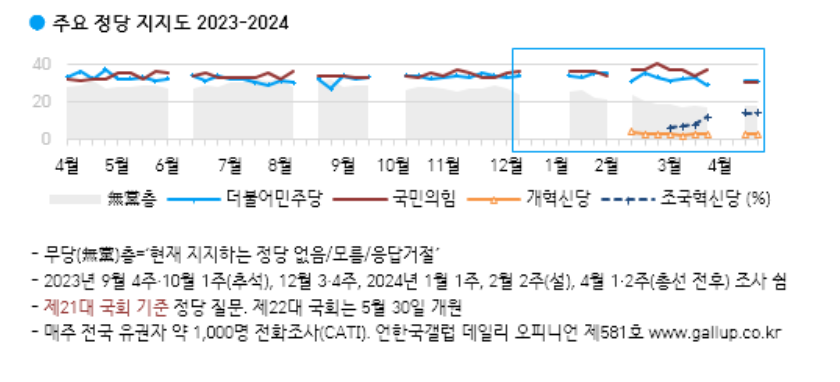 22대 총선이 막을 내렸습니다. 이후 대통령과 정당 지지율이 어떻게 되는지 궁금해 하시는 분들이 많으실 것입니다.