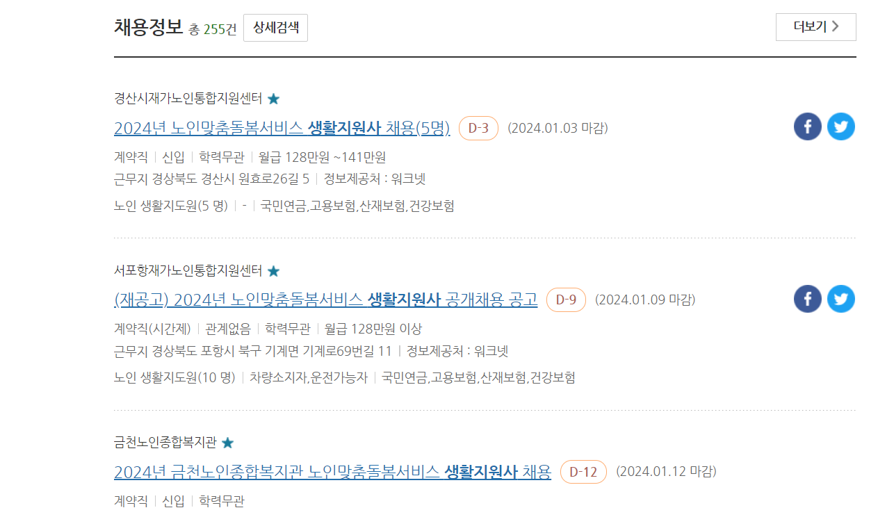 모집채용공고는 사람인등의 채용공고나 지역의 사회복지관등 또는 워크넷등을 통하여 참고해 보실수 있습니다. 워크넷에서 생활지원사등으로 검색해 보시기 바랍니다.