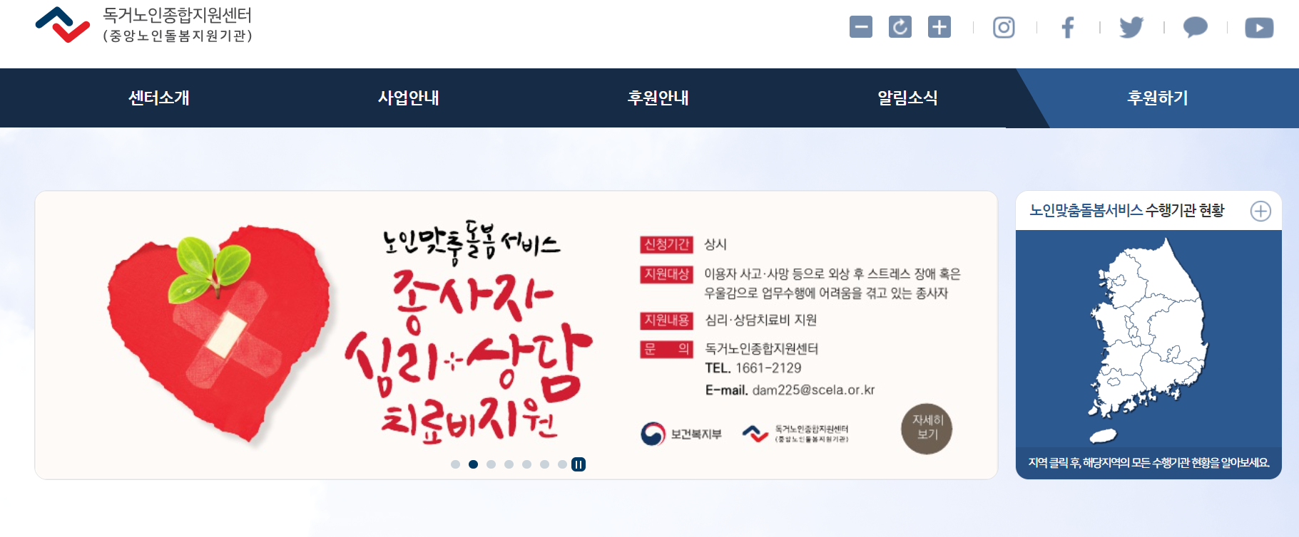 국내의 경우 출산율은 떨어지고 있지만 노인인구의 비율은 점차 증가하고 있습니다. 자연스럽게 고령화 사회에 진입하면서 노인들을 돌보고 관리하고 지원하는 복지관련일들이 중요할 수 밖에 없게 되었습니다.