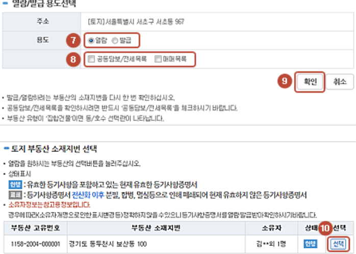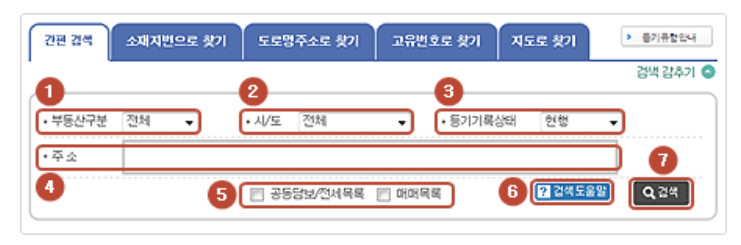 들어가시면 토지인지 건물인지, 시/도 정보 주소 등을 선택을 하실수 있습니다. 등기기록상태의 경우 유료한 등기사항을 현재 포함하는 것이 현행입니다. 폐쇄는 유효하지 않은 등기사항까지 조회를 하는 것입니다.