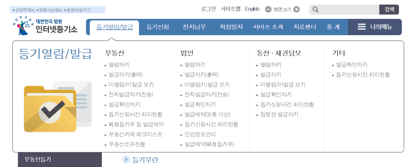 참고로 등기부등본은 읍면동 주민센터에서는 발급되지 않으며 현재는 편리하게 열람이 가능합니다. 아래에서 열람하는 방법을 살펴보도록 하겠습니다.