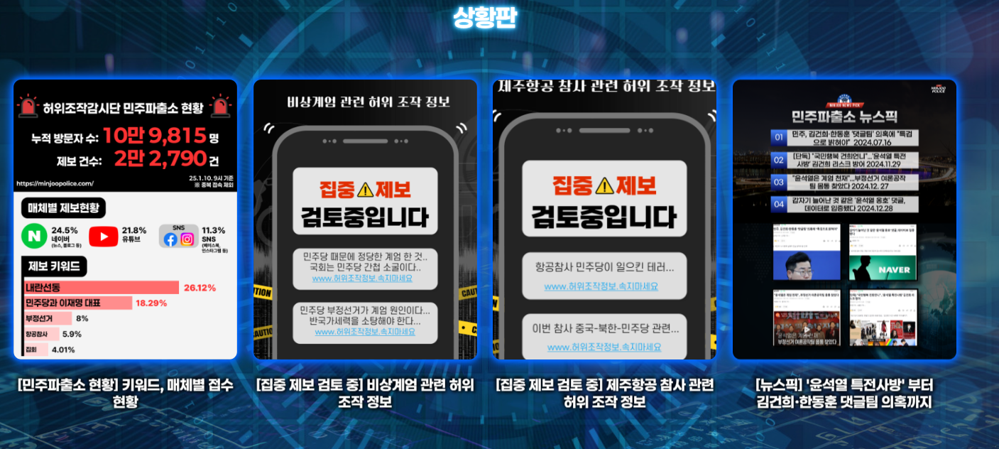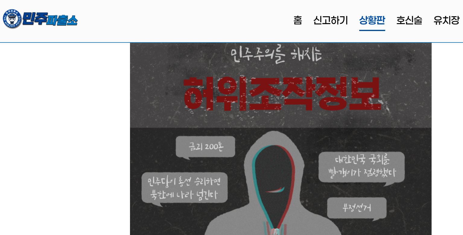 민주당은 2025년 1월 6일, 허위·조작 정보에 대한 대응을 위한 '민주 파출소' 플랫폼을 공식 출범시켰습니다. 이 플랫폼은 제보를 접수하고 이를 취합하여 고발 조치를 진행하는 역할을 할 것이라고 설명했습니다.