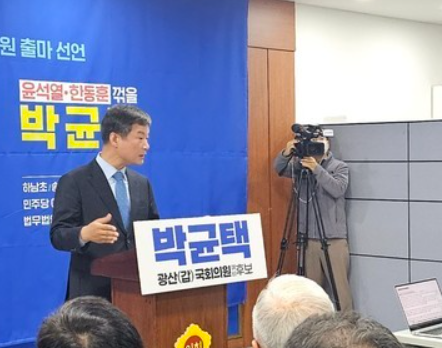 박균택은 공식적으로 출마를 선언하고, 광주 도시철도 2호선 신설을 주요 공약으로 내세웠습니다. 2024년 3월 6일에는 현역 이용빈 전 의원과의 경선에서 승리하며 더불어민주당 광산구 갑 국회의원 후보로 최종 확정되었습니다.