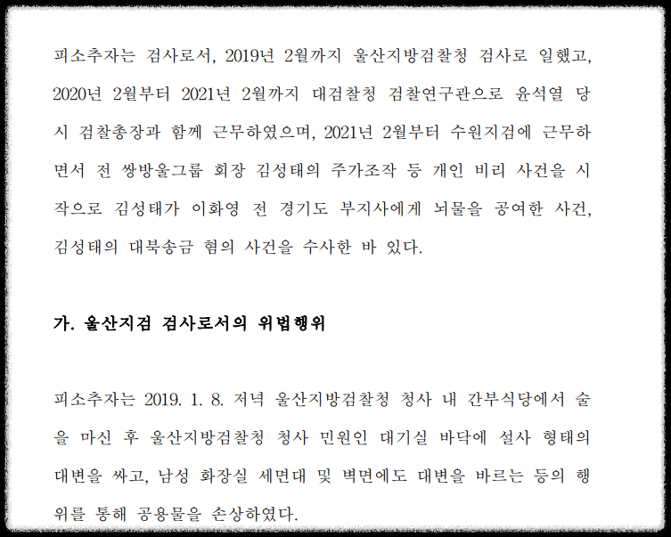 민주당은 앞서 이화영 술자리 회유 의혹과 관련하여 헌법적 책임을 묻겠다며 탄핵소추안을 발의하였습니다. 박검사는 쌍방울 대북 송금 사건을 수사하였다가 추후 탄핵 대상이 되었습니다.
