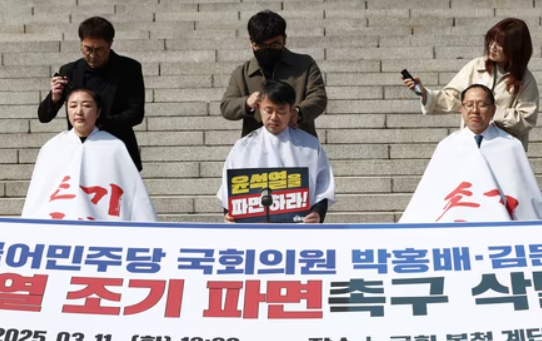 더불어민주당 초선 의원 전진숙·박홍배·김문수 의원은 2025년 2월 11일 국회 본청 앞에서 윤석열 대통령의 조기 파면을 촉구하며 삭발식을 진행하였습니다.
