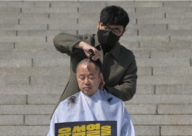 이들은 ‘조기 파면’이 적힌 가운을 입고 삭발한 후, 윤 대통령을 “내란수괴”라고 지칭하며 헌법재판관들에게 빠른 탄핵 결정을 요구하였습니다.