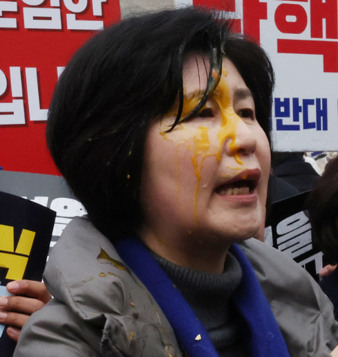 기자회견 종료 후, 윤석열 대통령 지지자로 추정되는 인물이 던진 계란이 백혜련 의원의 얼굴에 맞았고, 백 의원은 "민주주의 사회에서 있어서는 안 되는 일"이라며 경찰에 범인 추적을 요청하고 고발조치를 취할 것이라고 밝혔습니다.