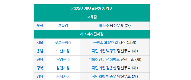 2025 재보궐선거 정리