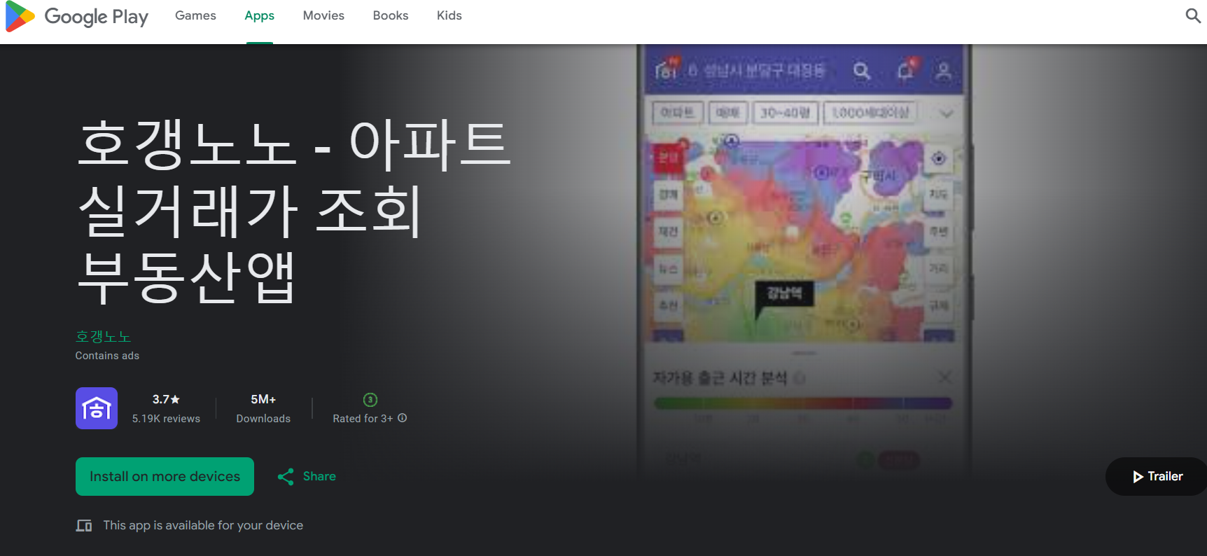 주변 가격변동을 비교하거나 매매 평수 가격 전세가율등 상세한 검색 필터를 제공해준다는 점이 장점인 어플입니다. 구글 앱스토어등에서 호갱노노를 검색하시면 다운로드 받으실수 있습니다.