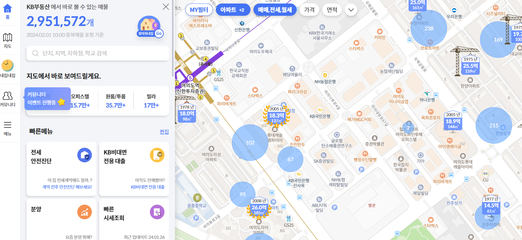 매물과 청약, 투자등 여러정보와 통계들을 파악하기에 좋은 사이트입니다. 사이트 또는 어플등을 통하여 이용해 보시기 바랍니다.
