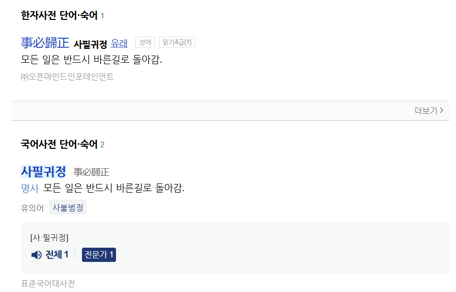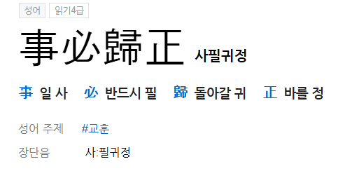 1. 사필귀정의 정의 뜻 한자 유래 예시