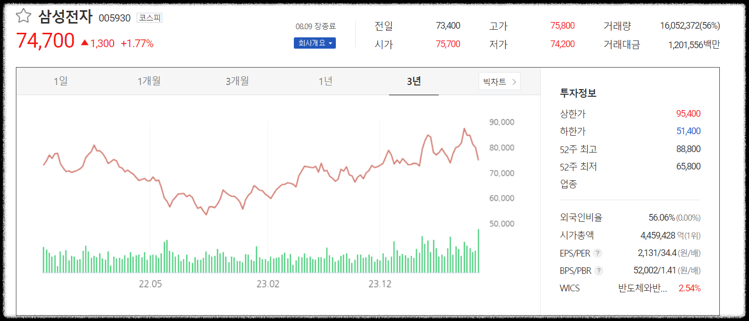 삼성전자는 많은 개인 투자자들이 보유하고 있는 국민주입니다. 주가 변동은 많은 사람들의 자산 가치에 직접적인 영향을 미치므로 자연스럽게 관심이 높기도 합니다.