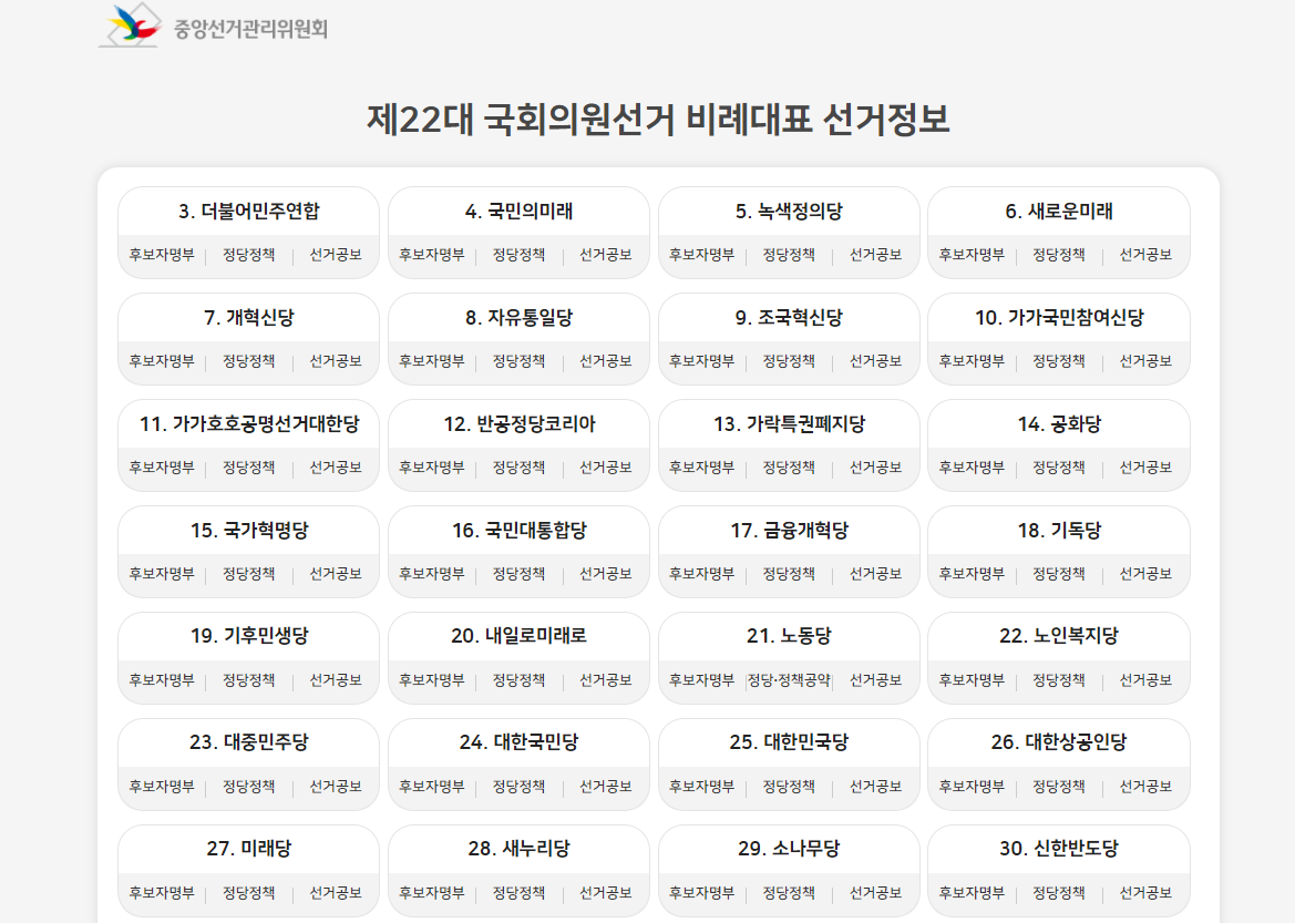 | 비례대표 의석수 계산 (비례대표 정당번호, 투표용지 순번) (0) | 2024.04.06 |