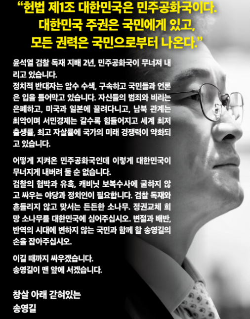작년인 2023년도의 말 경에 송영길 대표가 구속되는 상황이 발생하자 소나무당 창당히 무산되는듯 하였으나 옥중에서 창당선언을 하였고 초대 당대표로 선출되었습니다.