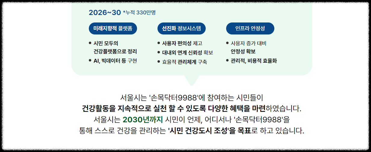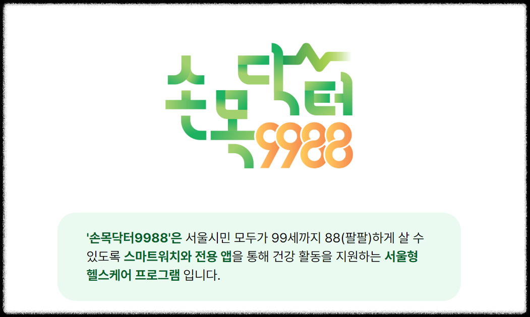 건강도 챙기고 혜택도 받는 손목닥터 9988, 지금 바로 신청하고 건강한 서울 생활을 시작해 보시기 바랍니다.