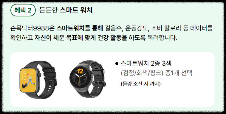 손목닥터 9988, 너무 좋아 보이는데 나도 참여할 수 있을까? 궁금하시죠? 매번 조기 마감으로 아쉬움을 남겼던 손목닥터 9988이 드디어 상시 모집으로 전환됩니다. 이제 원하는 때 언제든지 참여할 수 있습니다.
