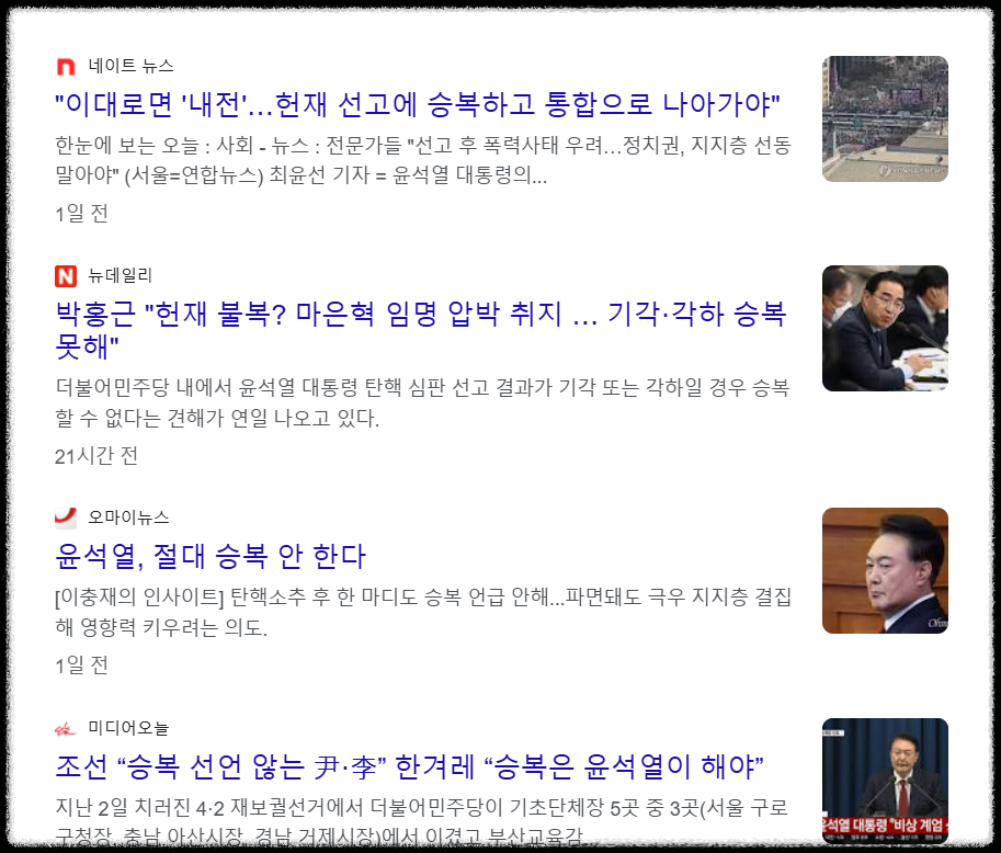 또한, 그는 헌재가 특정 결론을 유도하고 강요하는 민주당의 공세에 흔들려서는 안 된다고 강조했습니다. 국민의힘의 '승복' 요구는 민주당에게 정치적 부담을 주는 행위로 볼수있다는 분석입니다.