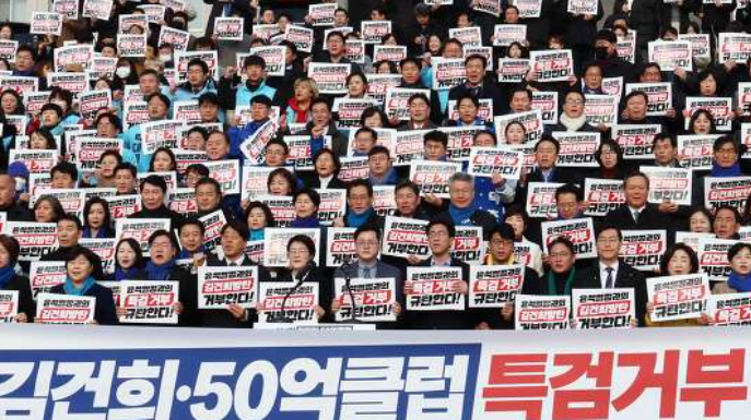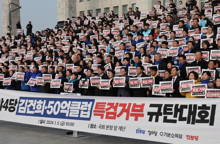 쌍특검 거부권 행사의 결과가 나오자 여당은 총선용 꼼수였다며 거부권은 정당하다는 반응을 보였습니다. 반면 야권은 국회에서 규탄집회를 열면서 공정과 정의가 무너졌다고 거센 비판을 가하였습니다.