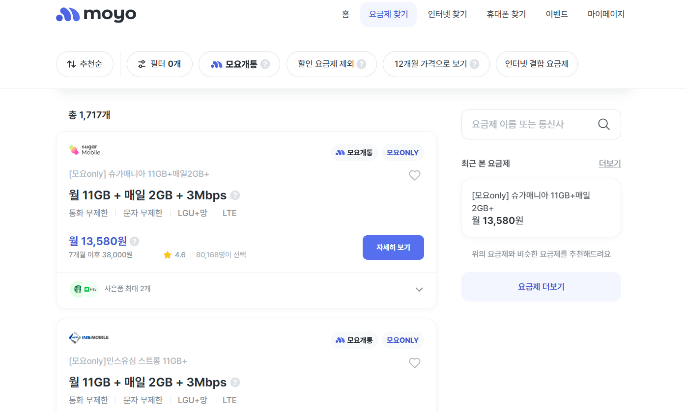 모요는 알뜰폰 요금제에 특화된 요금제 비교사이트입니다. 알뜰폰 요금제와 함께 휴대폰, 부가서비스 등을 비교할 수 있는 종합 비교사이트입니다. 이외에 아요, 뽐뿌, 우체국등을 이용하실 수 있습니다.