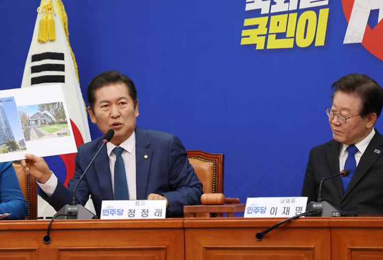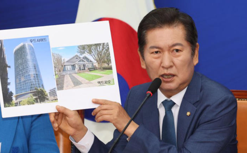 정청래 의원은 시추 성공 가능성을 대통령 지지율에 빗대며 발표가 너무 이르다고 평가했습니다. 거대한 우드사이드 본사와 액트지오 본사로 등록된 가정집을 비교하기도 했습니다.