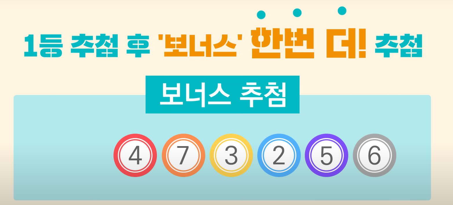 보너스: 보너스 번호 추첨번호 일치로 월 100만원을 10년간 지급, 세후로 총 9,360만원, 매월 780,000원입니다.