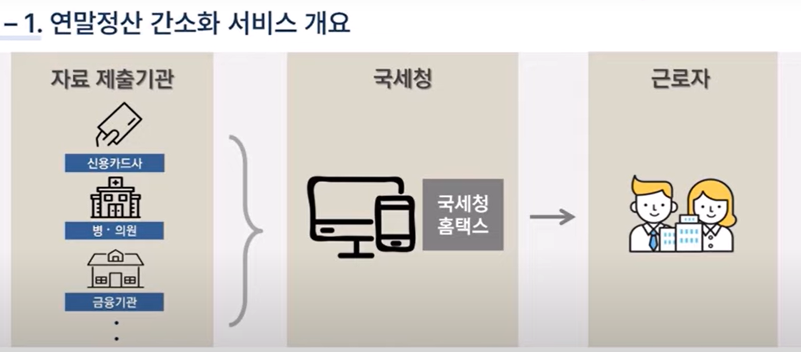 국세청 연말정산간소화서비스란란 병원에 가시거나 은행등의 발급기관에서 전산파일로 제출한 세액이나 소득에 관한 증명서류를 국세청 시스템과 TSA간의 연계를 통하여 근로자에게 제공하는 서비스를 말합니다.