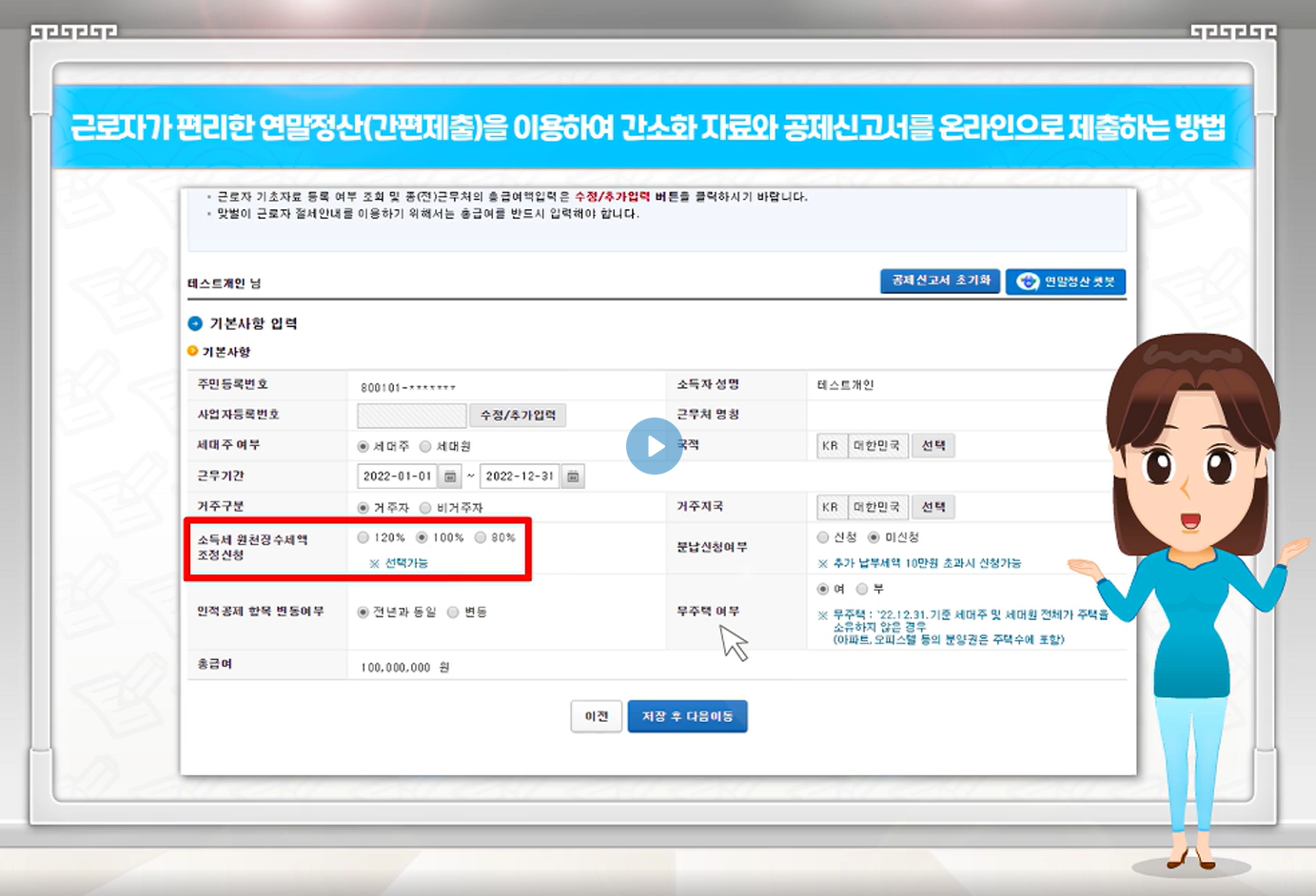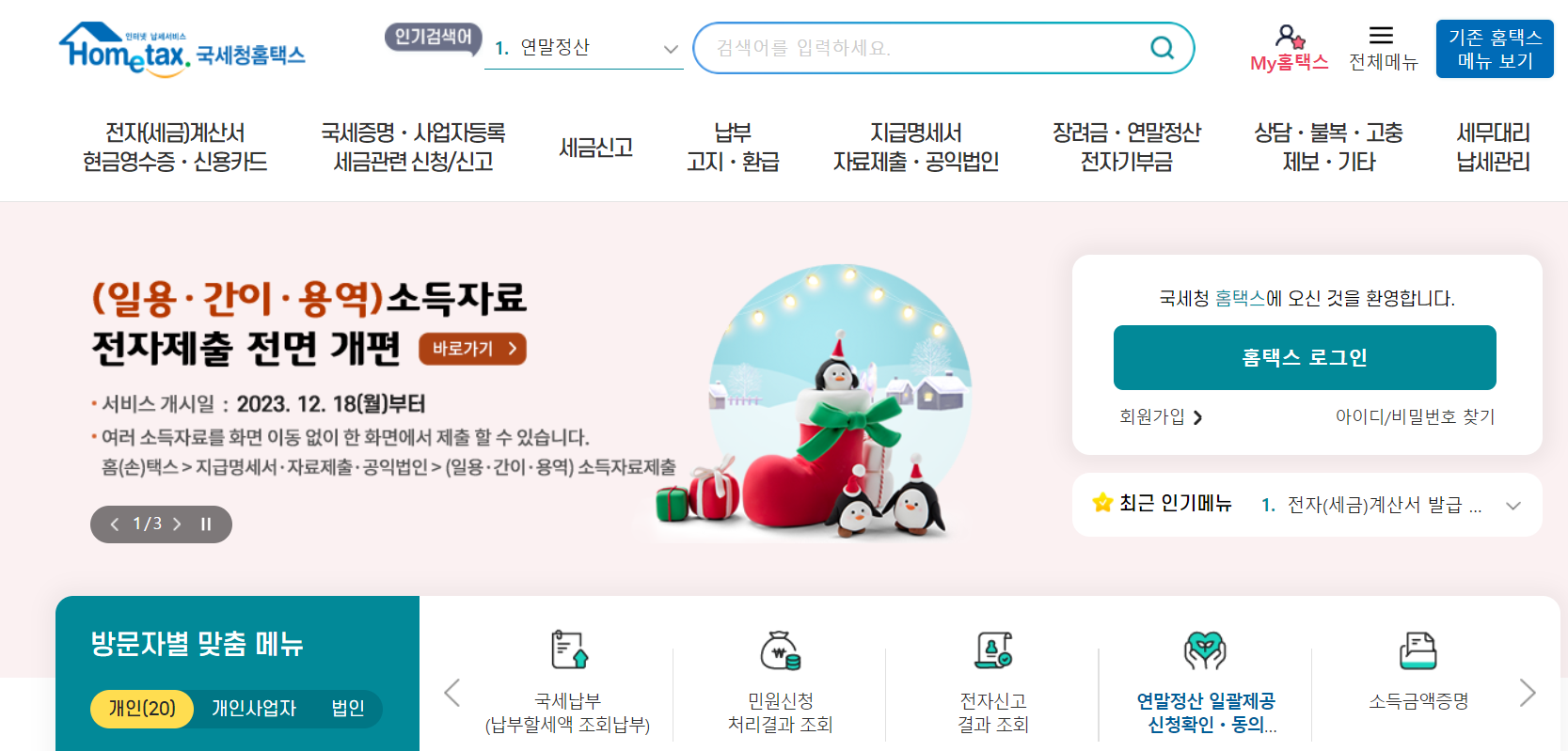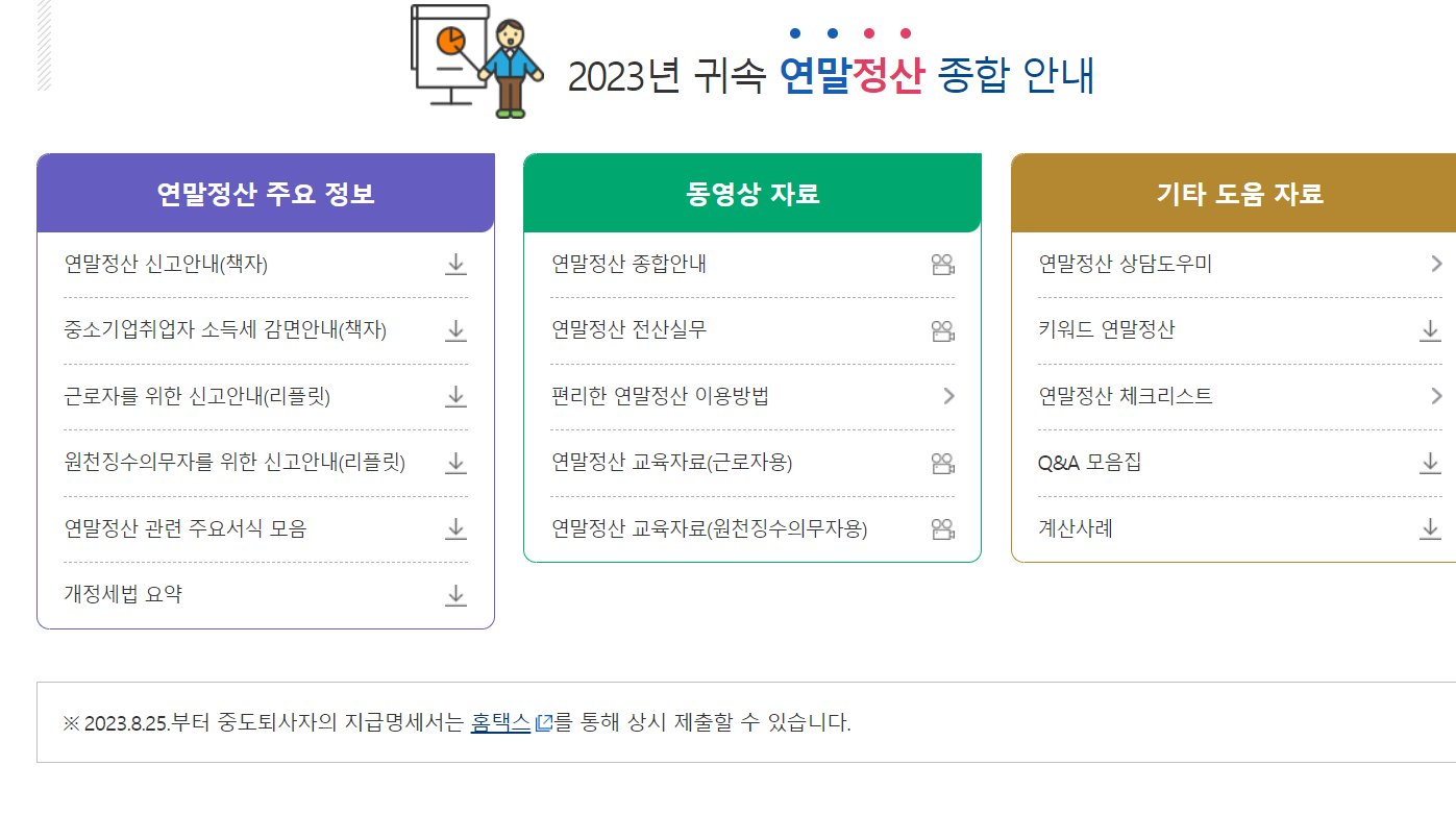 이외에 더 자세한 사항은 국세청 누리집 아래 사이트에 방문하셔서 연말정산 종합 안내 코너를 확인해 보시기 바랍니다.